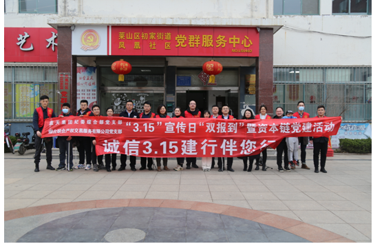 為進(jìn)一步普及社區(qū)群眾消費者權(quán)益知識,增強(qiáng)日常消費、網(wǎng)絡(luò)消費、金融消費的維權(quán)意識。3月15日下午,藍(lán)天集團(tuán)紀(jì)委綜合部黨支部和煙臺聯(lián)合產(chǎn)權(quán)交易服務(wù)有限公司黨支部邀請聯(lián)合產(chǎn)權(quán)“資本鏈”黨總支聯(lián)盟單位,以紅色黨建為引領(lǐng),以消費者權(quán)益日為契機(jī),在初家街道鳳凰社區(qū)開展“3.15”宣傳日雙報到暨資本鏈黨建活動。集團(tuán)黨委委員、聯(lián)合產(chǎn)權(quán)黨支部書記、董事長初志杰同志,集團(tuán)黨委委員、紀(jì)委書記湯志厚同志,以普通黨員身份參加。