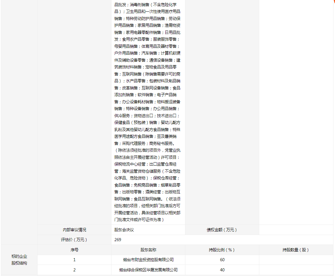 煙臺(tái)保稅開(kāi)發(fā)投資有限公司16%國(guó)有股權(quán)