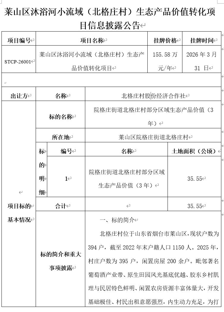 • 掛牌起止日期:2026年3月31日-2026年4月7日