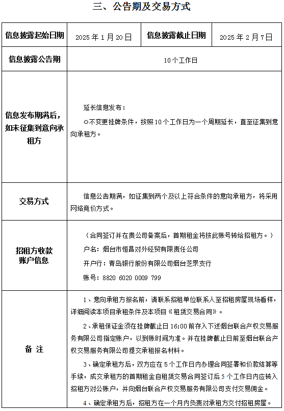 掛牌起止日期:2025年01月20日至2025年07月30日