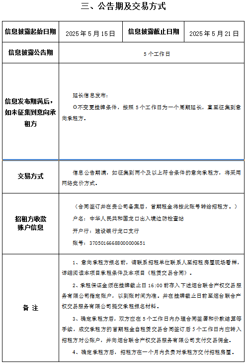 掛牌起止日期:2025年5月15日至2025年5月21日